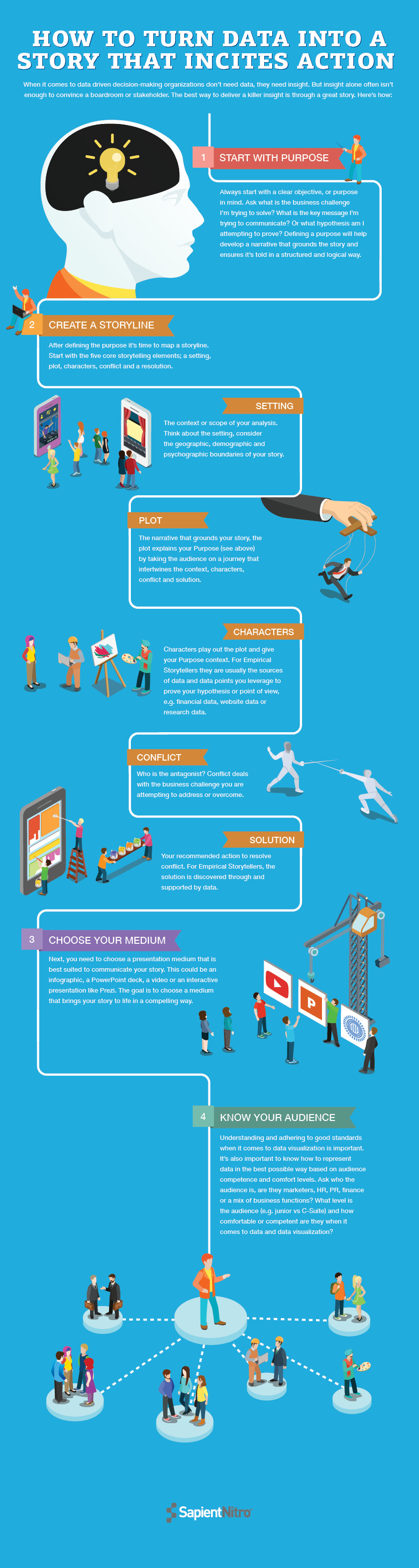 Next, the empirical storyteller chooses a presentation medium that is best suited to communicate the story. Whether this is an infographic, a standard Powerpoint deck, a video or an interactive presentation platform like Prezi, the medium should be carefully selected based on its ability to communicate the message and elicit an emotional response from the audience.